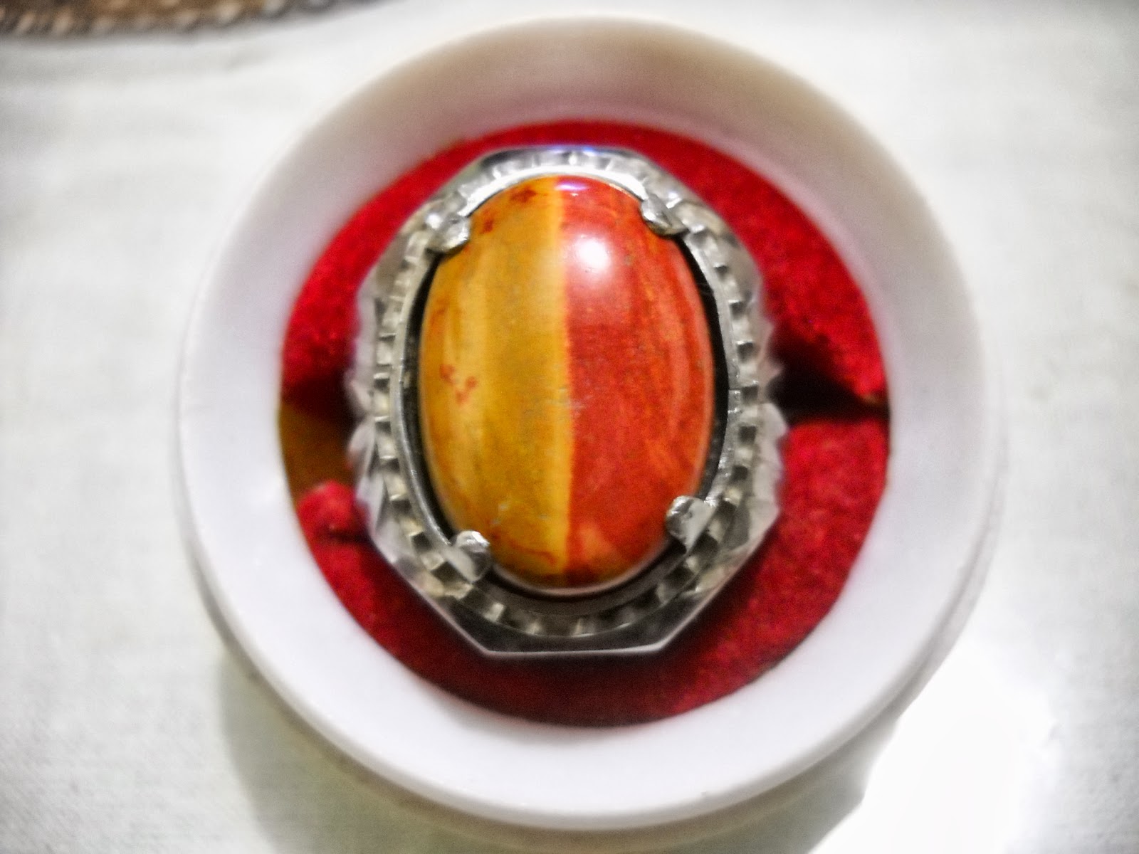 akik dwi warna (merah dan kuning), ikat monel, dimensi 21 x 15 mm.(SOLD)