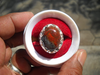 akik garut pancawarna, ikat alpaca, dimensi 21 x 16 mm. (SOLD)