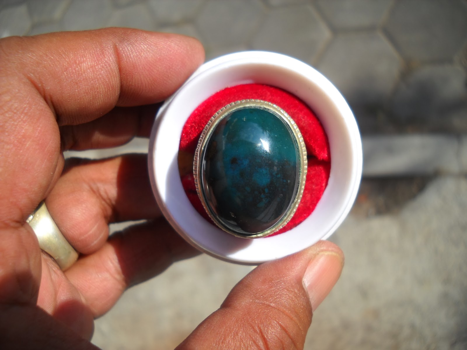 batu bacan dimensi cukup besar (27 x 20 mm), ikat alpaca, (SOLD)