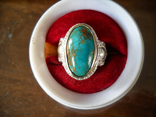 pirus biru urat emas, sayang urat tidak merata (njolo), ikat alpaca, dimensi 20 x 13 mm. (SOLD)