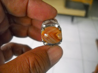 akik motif tulang ikan, ikat monel, dimensi 16 x 14 mm. (SOLD)