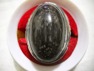 fosil kayu wulung (warna hitam), ikat monel, dimensi 26 x 16 mm. (SOLD)