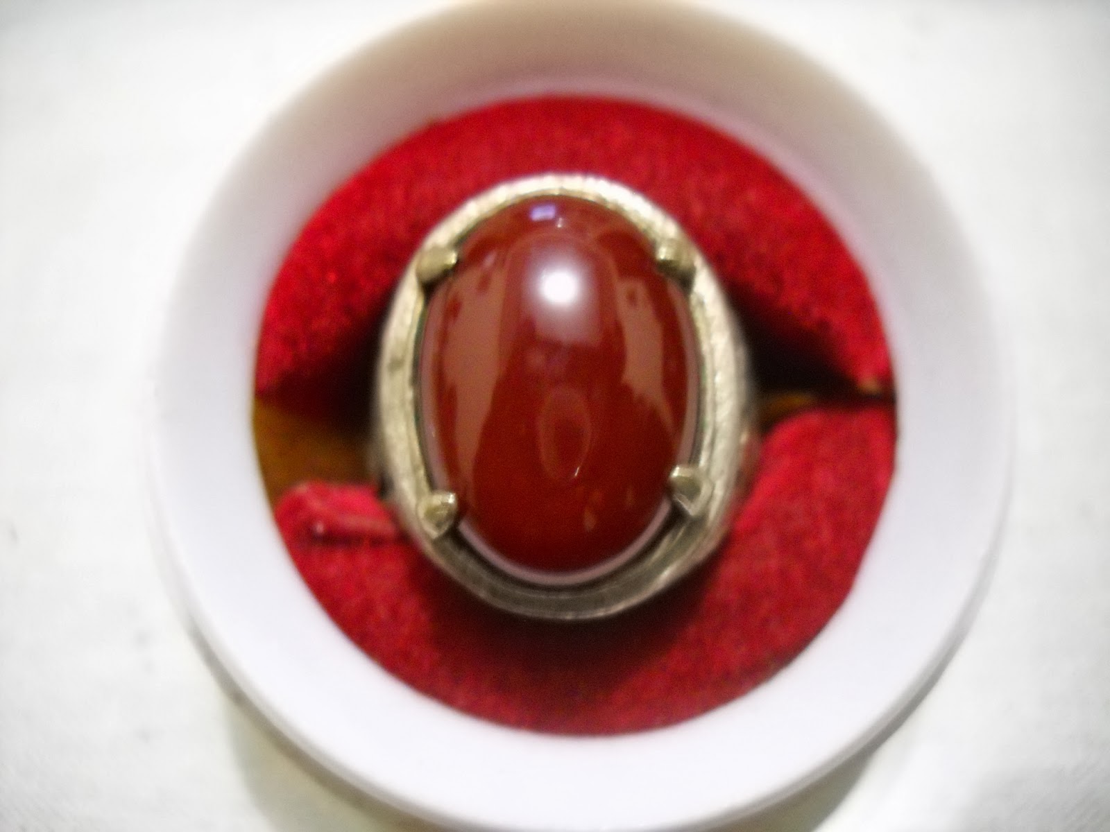 yahman madu transparan tembus warna merah. Ikat alpaca, dimensi 20 x 15 mm. (SOLD)