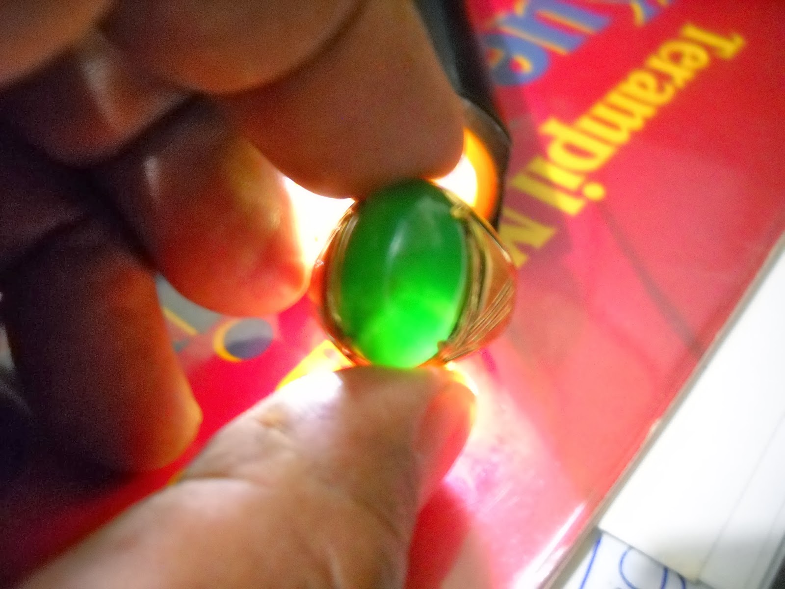hijau garut ikat kuningan sari, semi kristal, dimensi 19 x 13 mm. (SOLD)