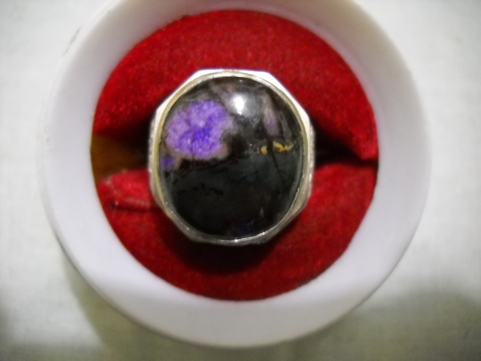 purple sea sediment jasper dengan motif bunga kecubung, ikat alpaca, dimensi 18 x 16 mm. Rp. 175.000,-