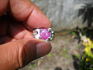 Ruby Afrika, nginden, adas patkwa, ikat monel. Dimensi 10 x 9 mm. (SOLD)