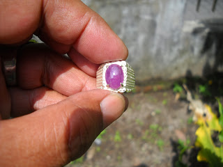 Ruby Afrika dengan warna mendekati mata udang, ikat alpaca, dimensi 11 x 8 mm. (SOLD)