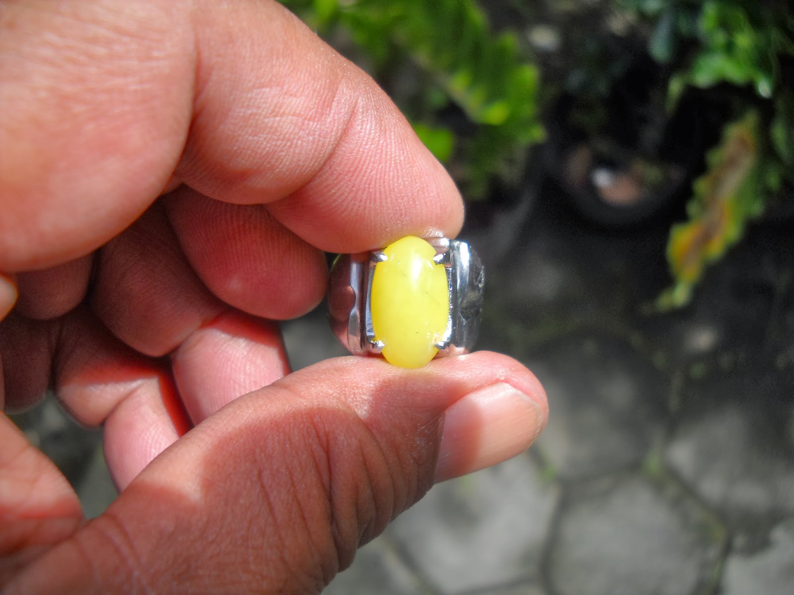 sungai dare warna pupus daun, dimensi 15 x 9 mm. Ikat monel halus. (SOLD)