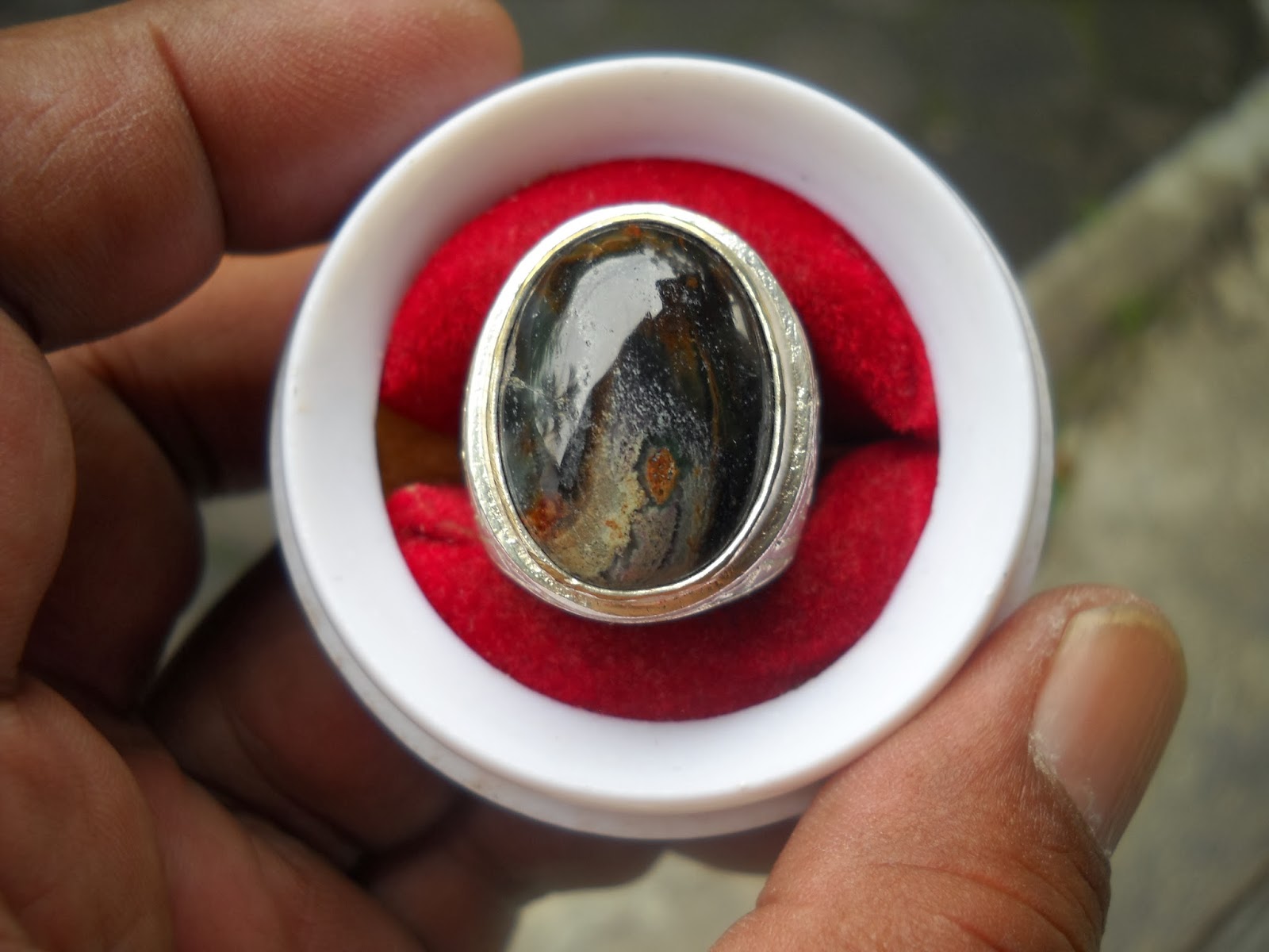 akik pancawarna gambar orang, ikat alpaca, dimensi 20 x 15 mm. (SOLD)
