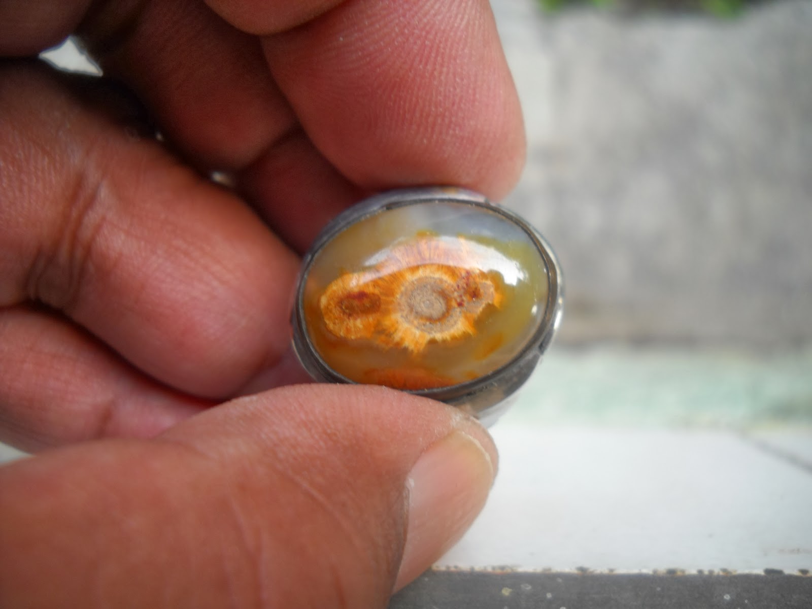 akik gambar landak, ikat monel, dimensi 22 x 16 mm. (SOLD)