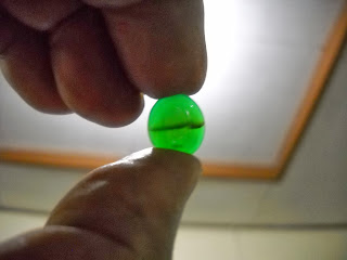 Chrysoprase unik dengan tali kendit hitam, dimensi 14 x 11 mm. (SOLD)