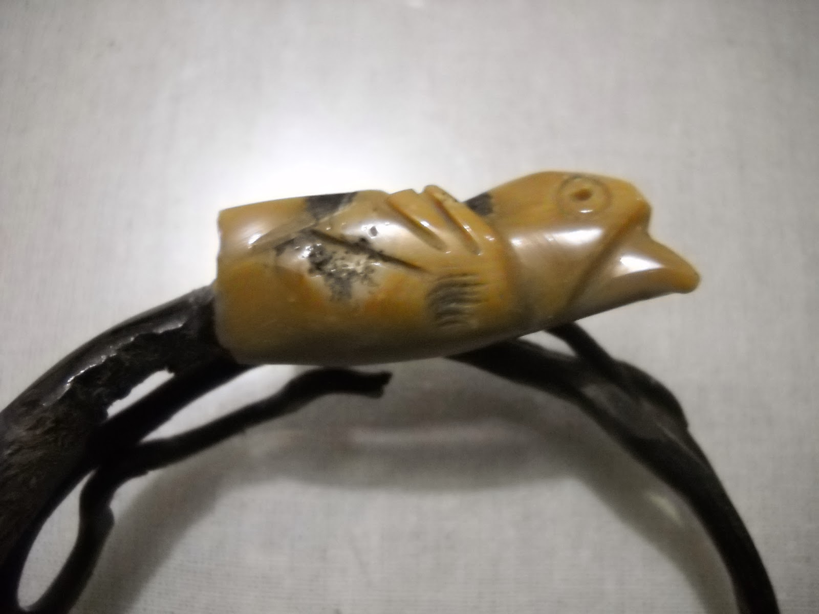 gelang akar bahar, dengan ujung agate yang diukir.(SOLD)