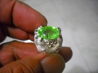 green diopside/jamrud Kalimantan, warna hijau segar, ikat alpaca model cakar garuda. Dimensi 15 x 10 mm. (SOLD)