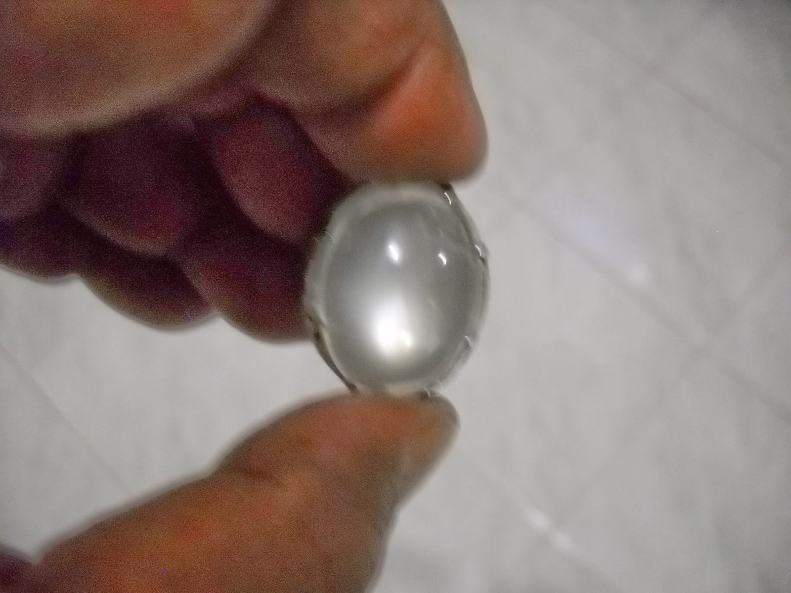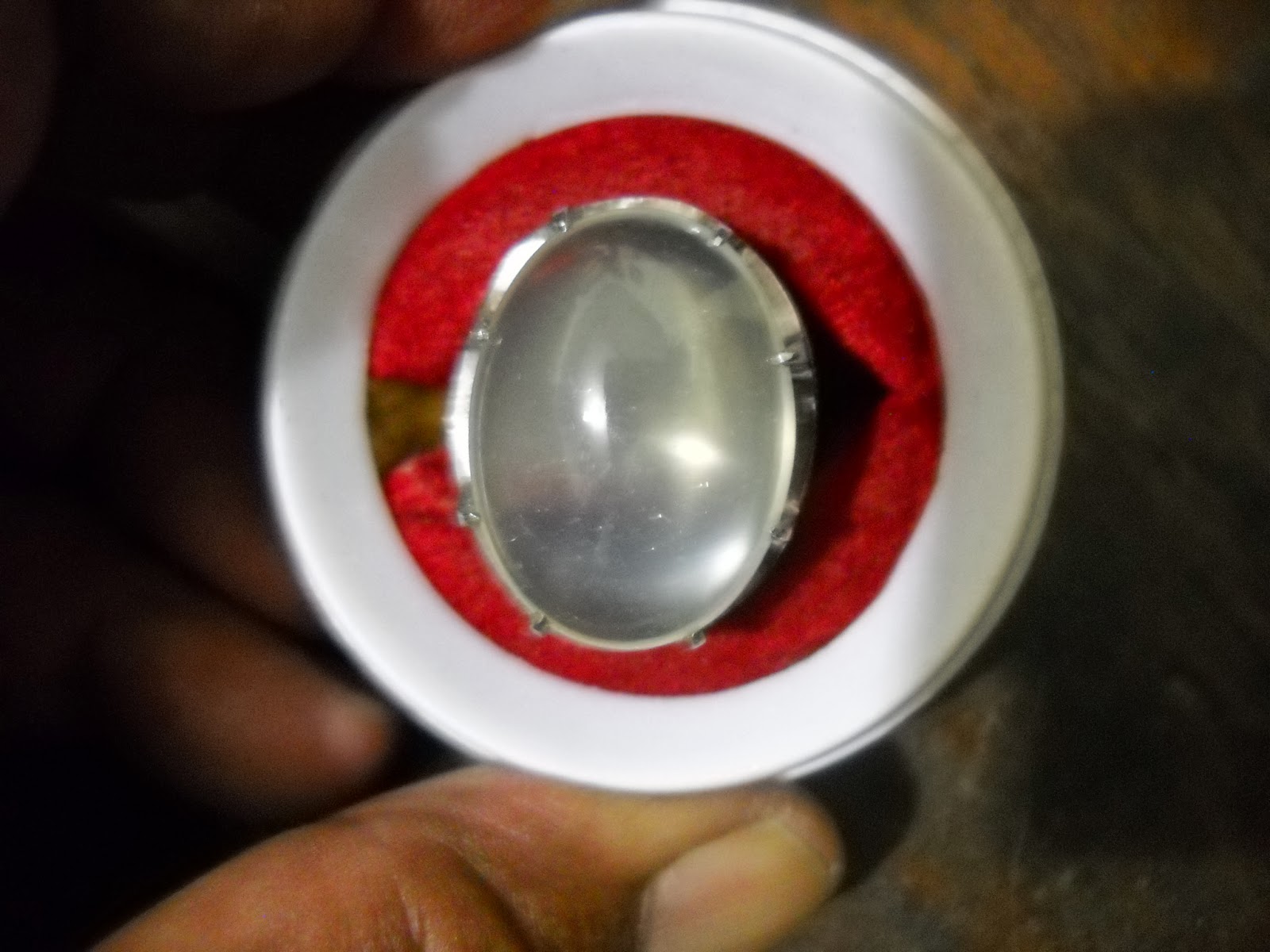 moonstone jumbo, batu dari Ceylon, sinar putih sangat tajam (batu asli lebih bagus). Ikat monel, dimensi 25 x 18 mm. (SOLD)