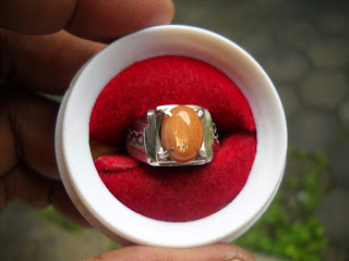 sunstone orange, sinar tajam, ikat monel. Dimensi 11 x 9 mm. (SOLD)