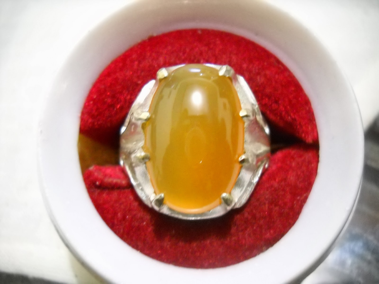 Yahman cempaka (sekarang banyak disebut golden keladen), warna kuning merata, ikat alpaca. Dimensi 20 x 14 mm.(SOLD)