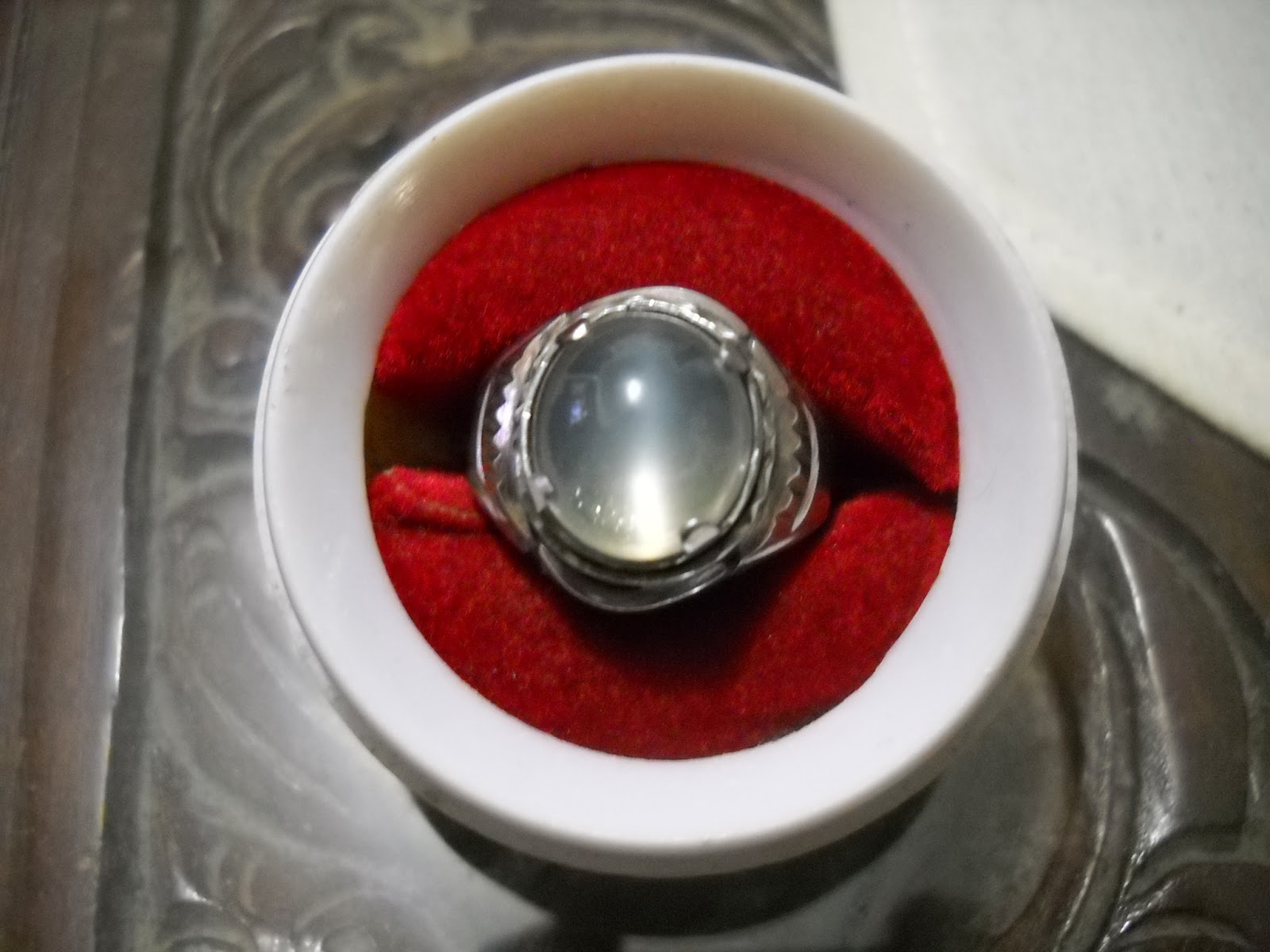 moonstone cat eye Ceylon (tali sangat tajam), batu kristal. Ikat monel, dimensi 15 x 13 mm. (SOLD)
