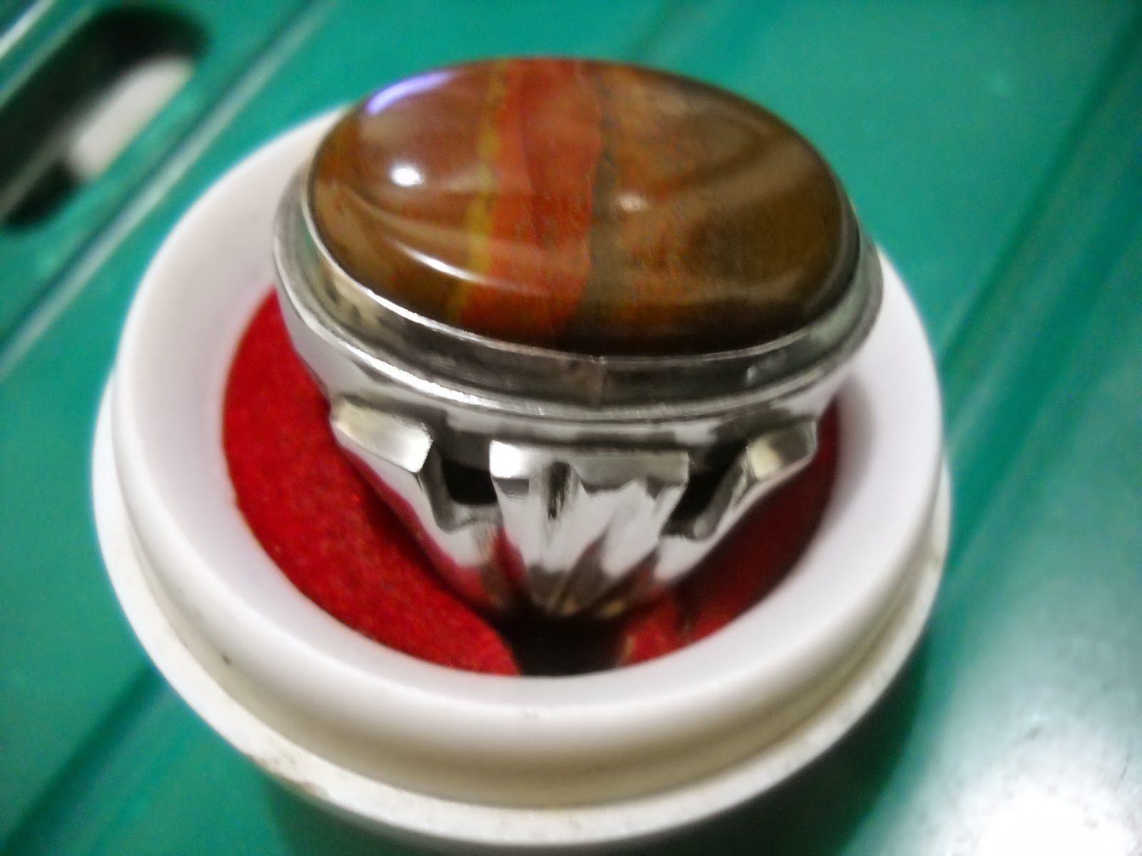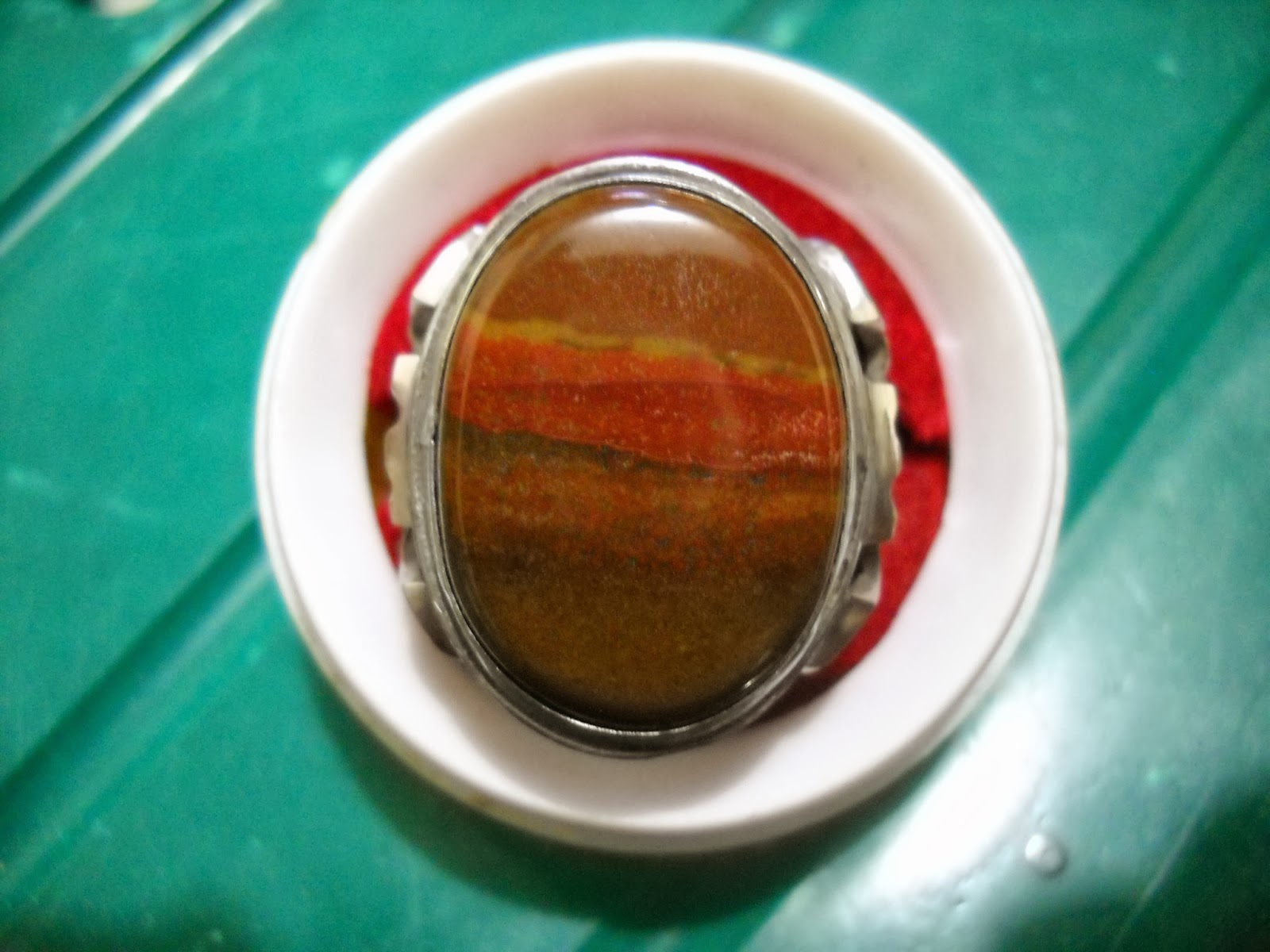 akik garut pancawarna kendit, ikat monel tebal, dimensi 29 x 21 mm. (SOLD)