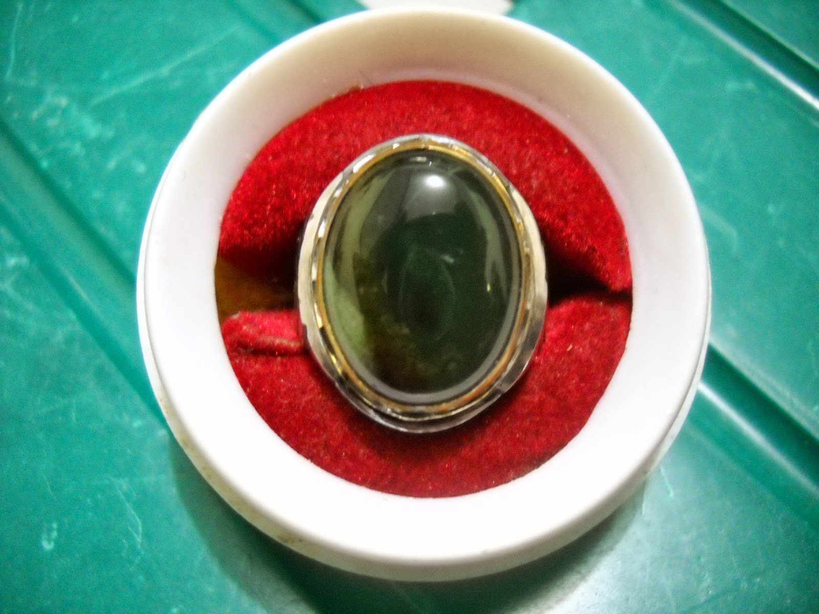 Garut ijo lumut tua, kombinasi sedikit putih (kiri bawah), tembus cahaya.Ikat monel, dimensi 20 x 15 mm. (SOLD)