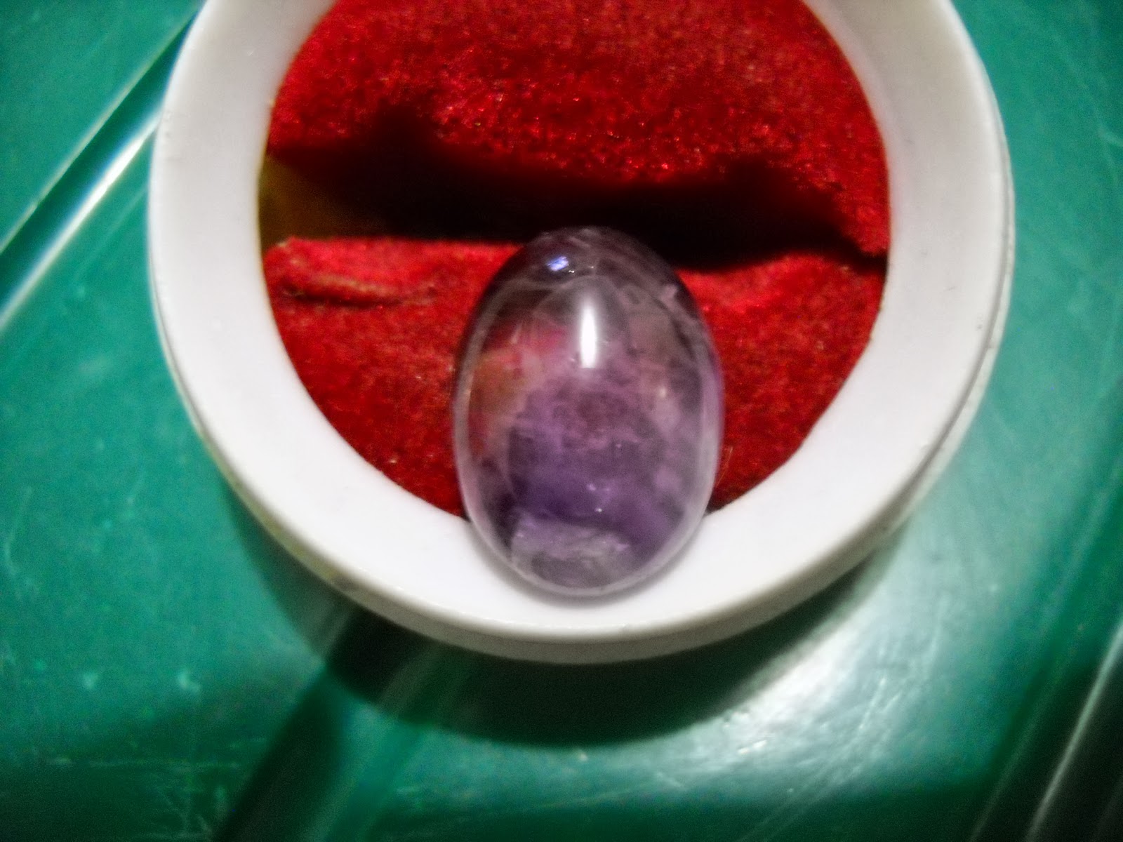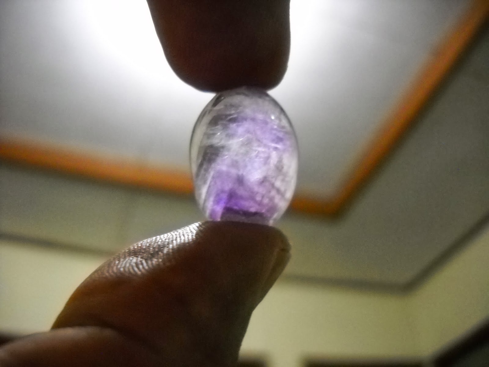 kecubung junjung drajad Tanjung Bintang (warna ungu muda dan es), batu kristal. Dimensi 20 x 15 mm. Rp.150.000,-