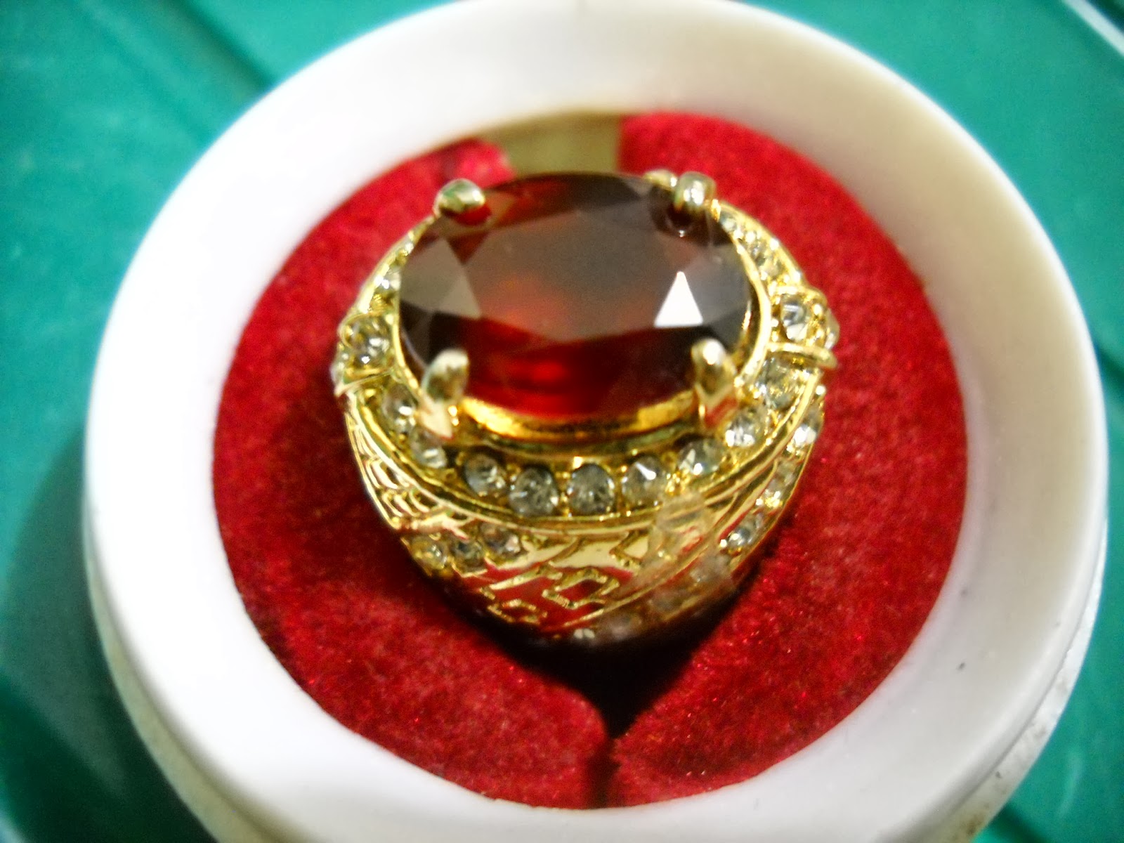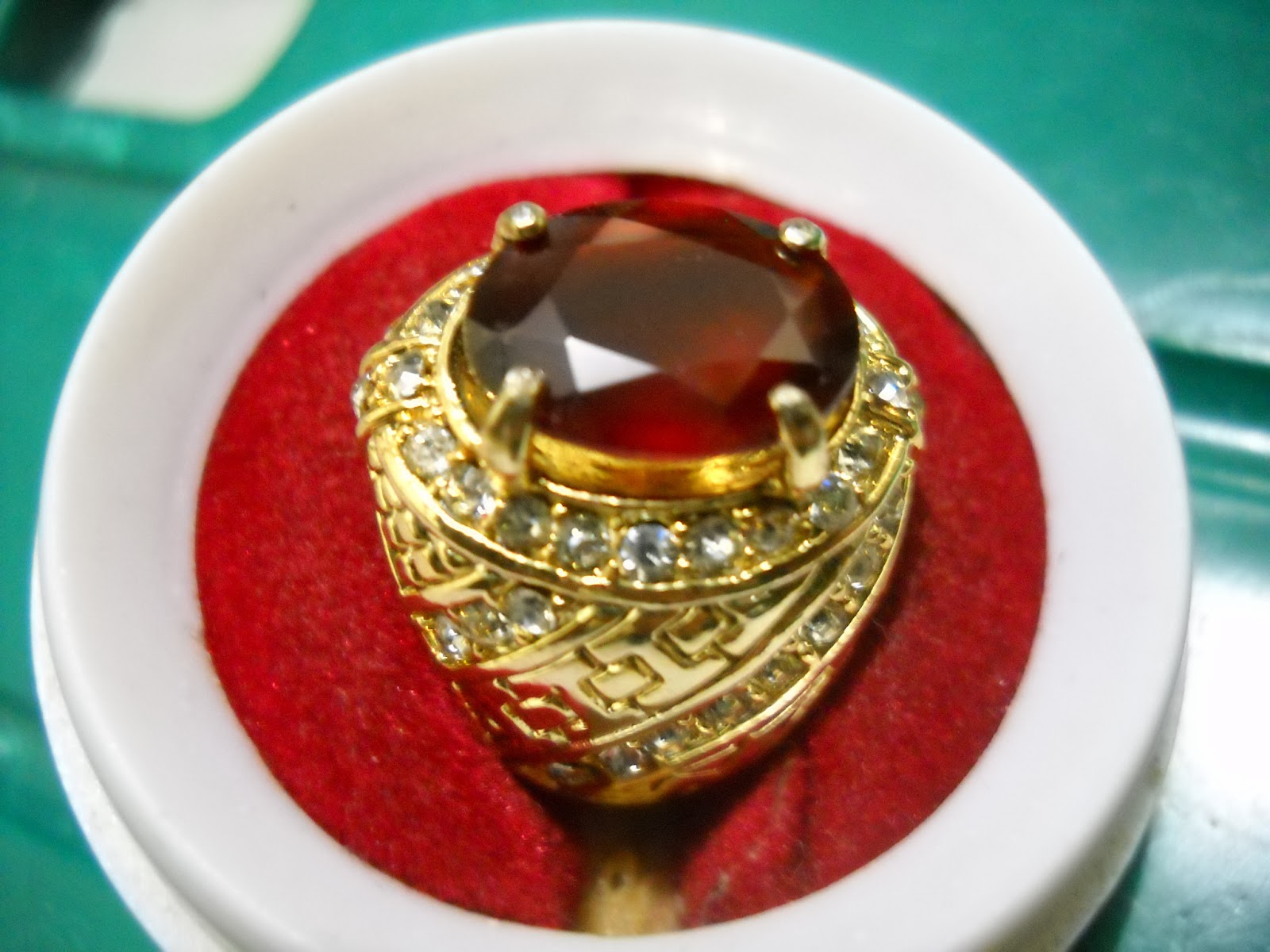 grossular garnet, ikat aloy tretes sepuh, dimensi 15 x 10 mm. (SOLD)