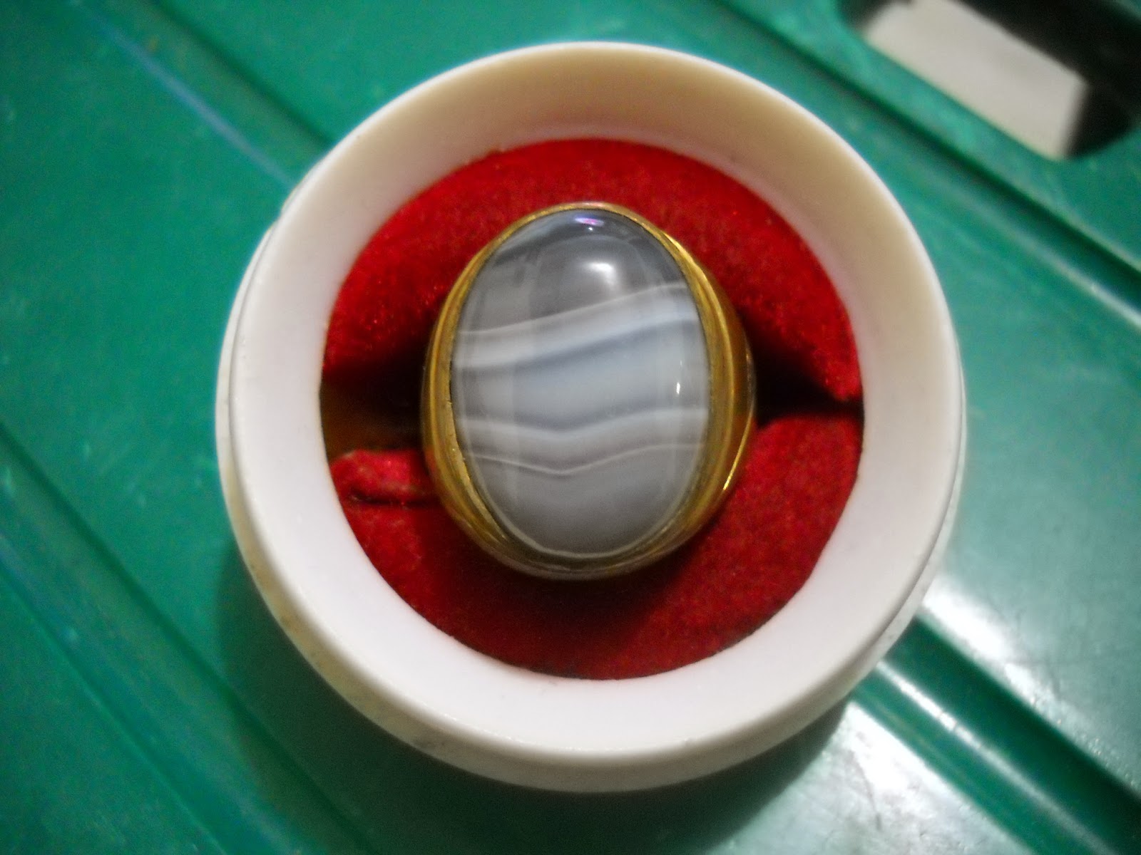 Sulaiman Daud lorek semi kristal,  ikat kuningan sari, gradasi warna abu-abu putih. Dimensi 20 x 16 mm. Rp.175.000,-