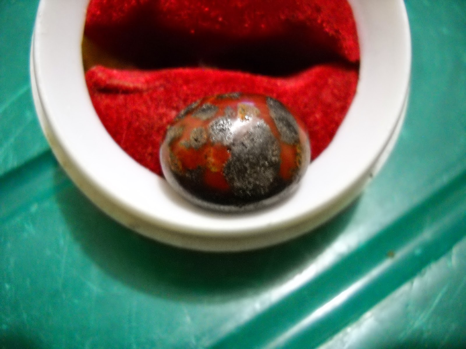 badar besi warna merah kombinasi warna perak, asal luk ulo Kebumen, dimensi 19 x 15 mm. Rp.125.000,- (booked)